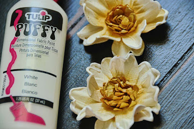 Now, let the puffy paint dry slightly, 15 minutes or so. Then very carefully take your heat gun to the edges of the petals and using constant motion while your heat drying, watch the paint start to puff!! But be very careful, don't get to close or the paint or the paper will burn!!