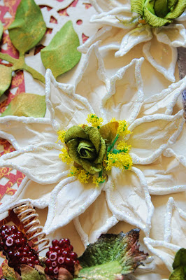 I will also show you a white poinsettia variation. Edge with puffy paint and set aside to dry.