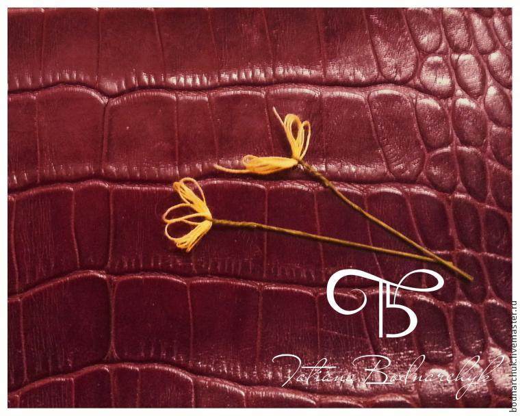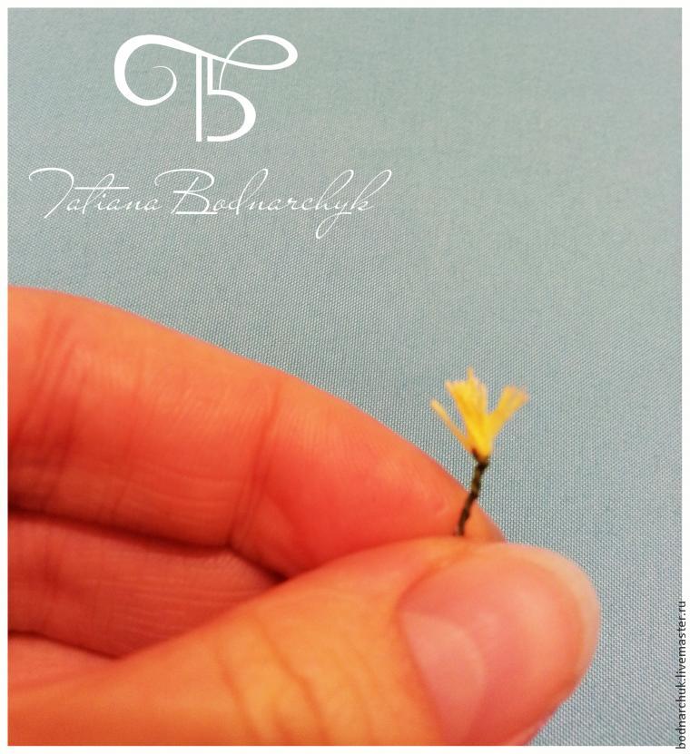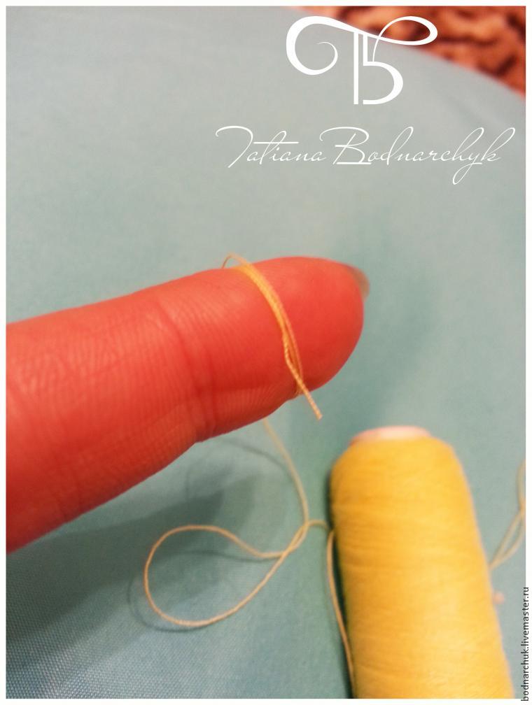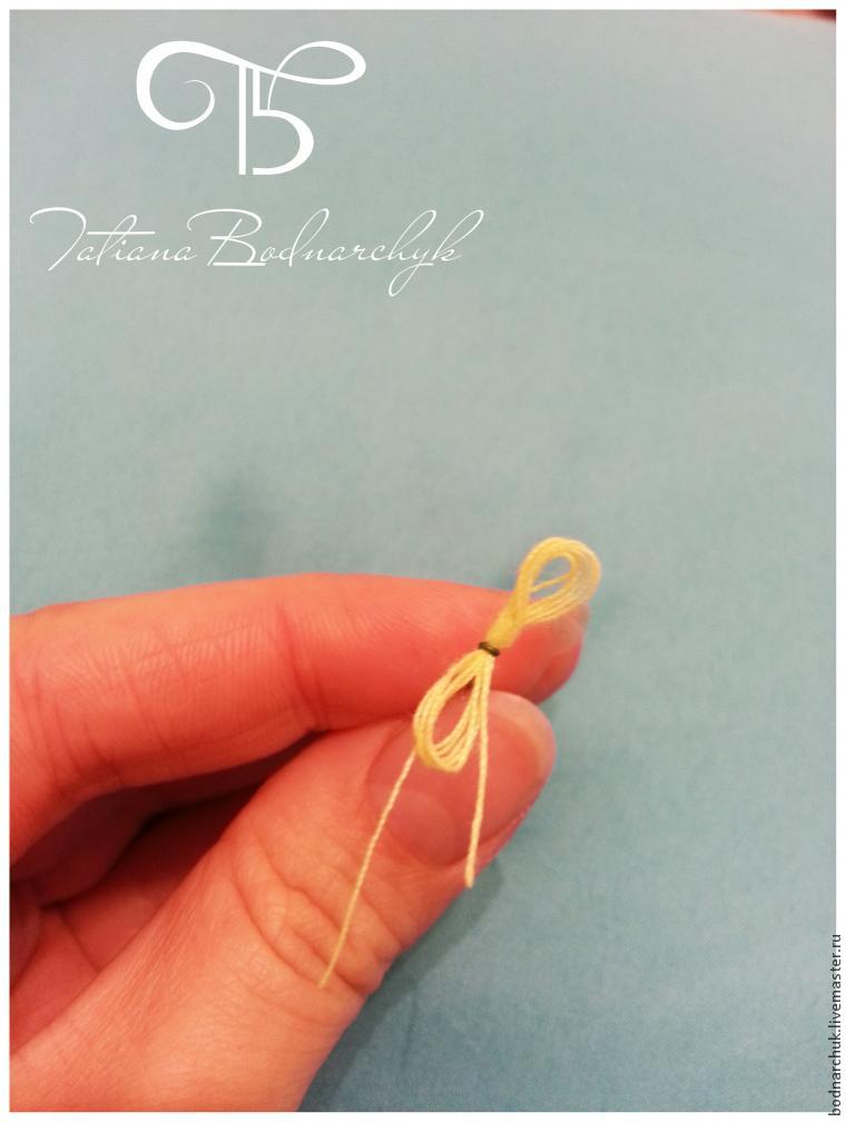 6. Для тычинок берем желтые нитки и наматываем вокруг пальца несколько раз