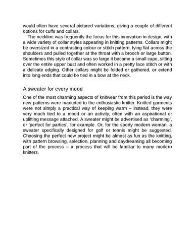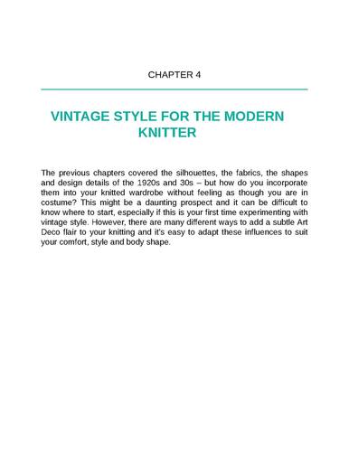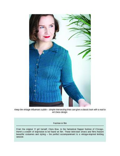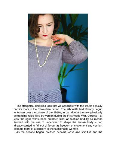 Книга по вязанию спицами Jemima Bicknell Эпоха джаза 1920-х и 1930-х годов является особенно вдохновляющим периодом в модном дизайне, хорошо известном своими причудливо украшенными тканями и элегантными деталями. Art Deco Knits стремится вдохновить современного вязальщика, который хочет создать гардероб в винтажном стиле или просто добавить штрих гламура в стиле арт-деко к своему вязанию.