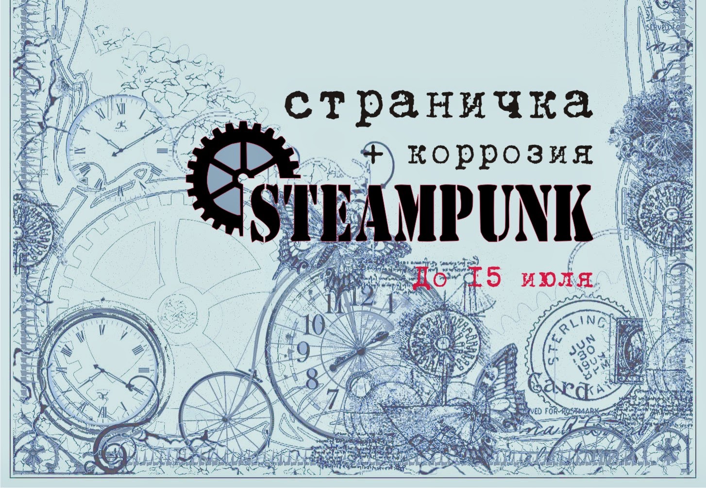 " Страничка + имитация коррозии металла" до 15 июля. Вообще весь альбом покрыт спреями Lindys - у них великолепный эффект ржавчины. Но к этому заданию больше всего подходит страничка под фото №36, там шестеренки покрыты такой медно-ржавой акриловой краской.