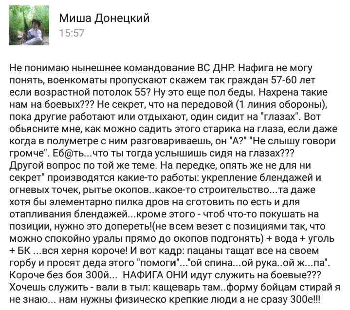 Месных мужиков из донбасса нужно принудительно мобилизировать в армию днр!!!! А то седят дома нихрена не делают только гуманитарку жрут.
