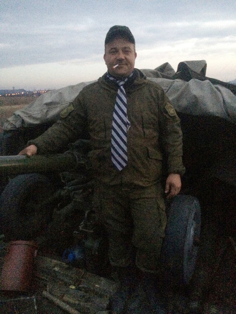 Комбат-полудурок Петр Ручьев (отб Дизель)доволен жизнью и желает пенсионерам ДНР приятного аппетита.