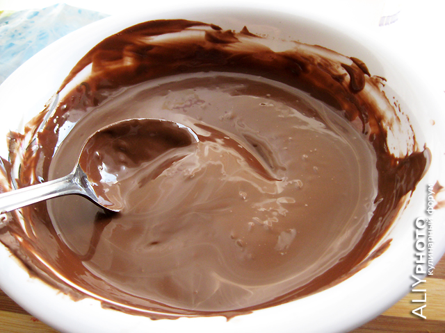 Шоколад растопила с раст. маслом на паровой бане (подробнее о глазури здесь: