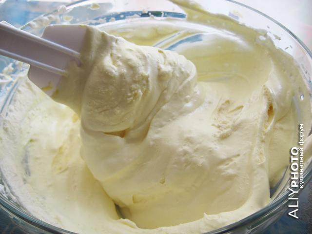 Затем понемногу добавляла сахар и ванильный сахар, и взбивала до тех пор, пока сахар не растворился