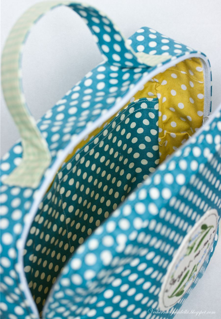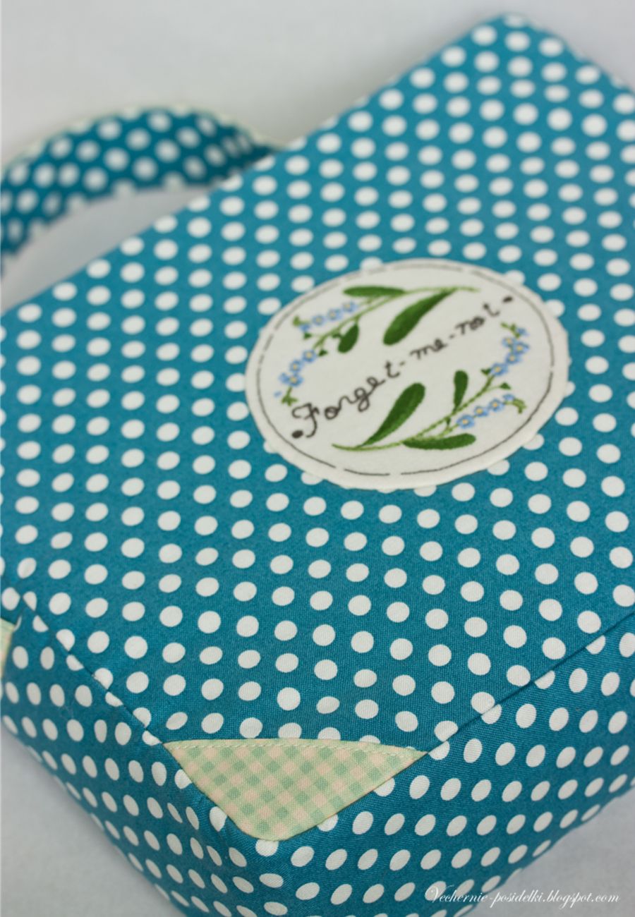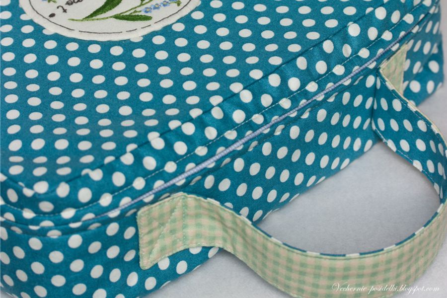 Чемоданчик получился в ретро стиле, думаю, он откуда-то из шестидесятых. Горошек, цвета, форма, ну и конечно романтичная вышивка создают такое настроение.
