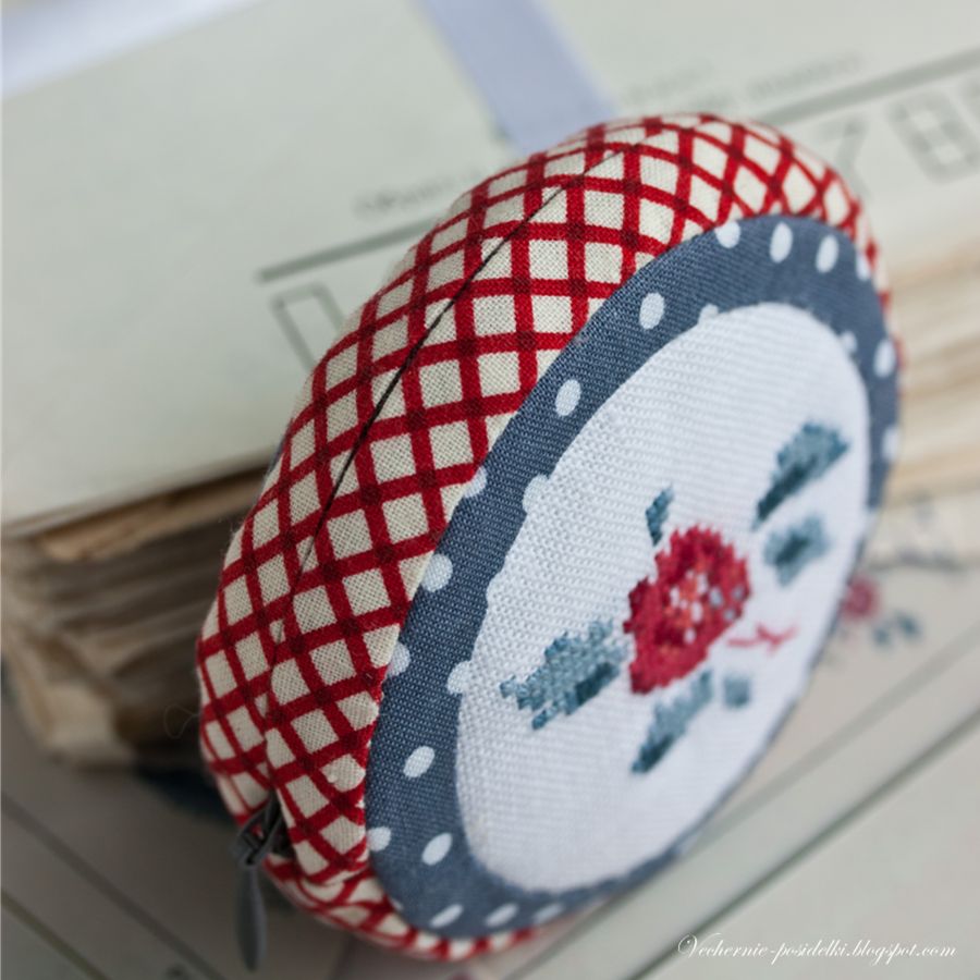 Отделения для мелочи в моём кошельке не предназначено, и чтобы отучиться от привычки носить её в карманах, на «кошельковой» волне я сшила отдельный маленький, диаметром всего 8см, кошелечек на молнии, пристроив вторую маленькую вышивку и это, конечно, тоже для меня ново.