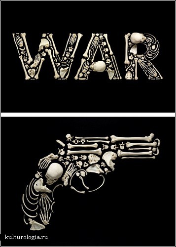 Французский фотограф Франсуа Роберт решил выразить свой протест против насилия весьма оригинальным способом: из настоящих человеческих костей автор выкладывает изображения, символизирующие разрушения и смерть.