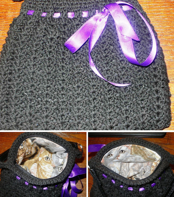 Материалы: нитки вязальные хлопчатобумажные (Violet фирмы Yarn Art), крючок вязальный (1,0 мм), кольца пластмассовые диаметром 5см, подкладочная ткань, молния.