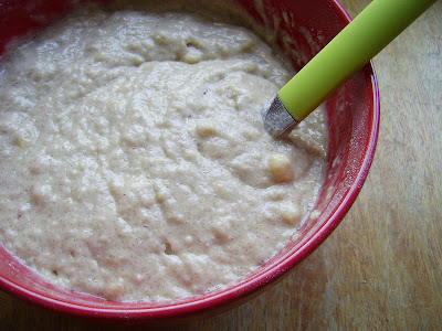 смешать сухие и влажные компоненты, получится средней густоты тесто