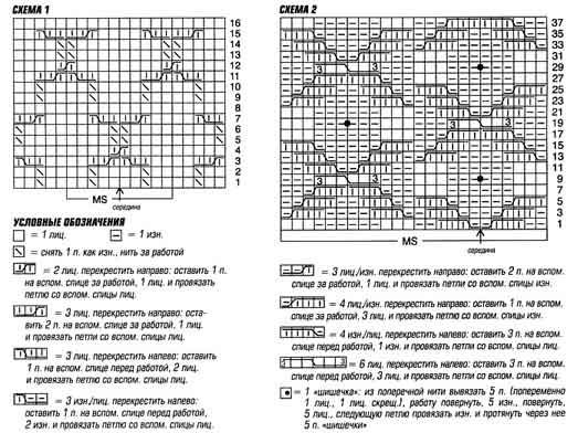 From Drop Box Размер: 42/44 Вам потребуется: 700 г голубой пряжи RoyalTweed(100% мериносовой шерсти, 100 м,50 г); круговые спицы № 6. Резинка: попеременно 2 лиц., 2 изн. Изнаночная платочная вязка: в круговых рядах вязать попеременно по 1 круговому р. изн. и лиц. Сетчатый узор: вязать круговыми рядами по схеме 1, на которой приведены все нечетные и четные круговые ряды. Начать с петель перед раппортом, повторять раппорт из 10 п., заканчивать петлями после раппорта. Повторить 2 раза с 1-го по 16-й круговой р. = 32 круговых р. Узор с "шишечками": вязать круговыми рядами по схеме 2, на которой приведены только нечетные круговые ряды, в четных круговых рядах петли вязать по рисунку. Повторять раппорт из 24 п. Повторить раппорт из 24 п. Повторить 1 раз с 1-го по 38-й круговой р. Узор "соты": вязать круговыми рядами по схеме 3, на которой приведены только нечетные ряды, в четных круговых рядах петли вязать по рисунку. Начинать с петель перед раппортом, повторять раппорт из 6 п., заканчивать петлями после раппорта. Повторить 5 раз с 1-го по 8-й круговой р., затем 1 раз 1-й и 2-й круговой р. = 42 круговых р. Особые убавления 1 п: до отмеченных петель провязать 2 п. вместе протяжкой (снять 1 п., как лиц., 1 лиц. и протянуть ее через снятую петлю); после отмеченных петель провязать 2 п. вместе лиц. Особые убавления 2 п.: до отмеченных пеель провязать 3 п. вместе протяжкой (снять 1 п., как лиц., провязать 2 п. вместе лиц. и протянуть эту петлю через снятую); после отмеченных петель провязать 3 п. вместе лиц. Плотность вязания. Изн. платочная взка: 15 п. и 5 круговых р. = 10х2 см; сетчатый узор: 17 п. и 23 круговых р. = 10х10 см; уор с "шишечками": 20 п. и 21 круговой р. = 10х10 см; узор "соты": 19 п. и 21 круговой р. = 10х10 см. Описание работы: пончо вяжется целиком круговыми рядами; набрать 484 п. и вязать следующим образом: 5 круговых рядов изн. платочной вязки, при этом для убавления отметить 1-ю, 122-ю, 243-ю и 364-ю п. и для придания формы убавить особыми убавлениями до и после каждой отмеченной петли в каждом 2-м круговом р. 2х1 п. = 468 п. В 5-м круговом р. от наборного края равномерно прибавить 104 п. = 572 п. Затем связать 32 круговых р. сетчатым узором, распределяя на каждой четверти пончо узор от середины. Одновременно для дальнейших скосов убавить особыми убавлениями до и после каждой отмеченной петли в каждом 2-м круговом р. 16х1 п. = 444 п.; в последнем круговом ряду сетчатого узора равномерно убавить 80 п. = 364 п. Теперь связать 5 круговых р. изн. платочной вязкой, при этом убавить особыми убавлениями до и после каждой отмеченной петли в каждом 2-м круговом р. 2х1 п. = 348 п.; в последнем круговом ряду изн. платочной вязки равномерно прибавить 160 п. = 508 п. Затем связать 38 круговых р. узором с "шишечками", распределяя на каждой четверти пончо узор от середины. Одновременно для дальнейших скосов убавить особыми убавлениями до и после каждой отмеченной петли следующим образом: в каждом 2-м круговом р. убавить *3х1 и 1х2 п., повторить от * 3 раза, затем убавить еще 3х1 п. = 324 п.; в последнем круговом ряду узора с "шишечками" равномерно убавить 96 п. = 228 п. Теперь связать 5 круговых р. изн. платочной вязкой, при этом убавить особыми убавлениями до и после каждой отмеченной петли в каждом 2-м круговом р. 2х1 п. = 212 п.; в последнем круговом ряду изн. платочной вязки равномерно прибавить 80 п. = 292 п. После этого связать 42 круговых р. узором "соты", распределяя на каждой четверти пончо узор от середины. Одновременно для