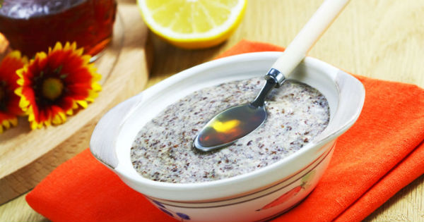 В эмалированную кастрюлю налить 2 ст. воды, положить 2 ст. л. семян льна и прокипятить на маленьком огне в течение 15 мин. Затем отвар процедить и добавить в него 1 ч. л. яблочного уксуса, размешать.