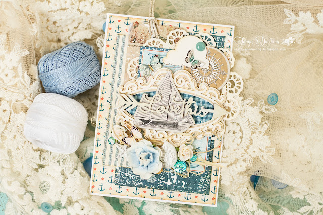 Эта открытка сложилась меня на одном дыхании, так как морскую тему я очень люблю, выросла у моря и не могу себе представить свое детство без морских волн и традиционного сбора ракушек вдоль берега.