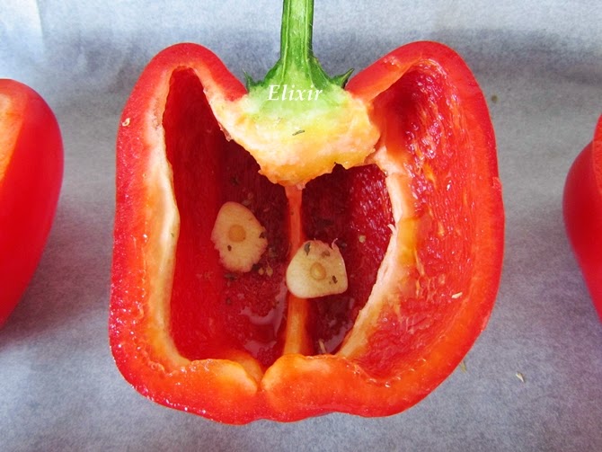 Преди да разполовите чушките ги огледайте от кои две срещуположни страни ще лежат стабилно без да се накланят и тогава ги разрежете пред средата,включително и през дръжката и семенната част.