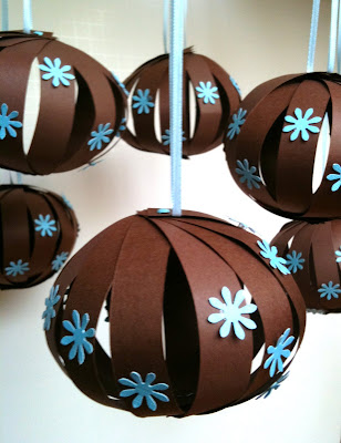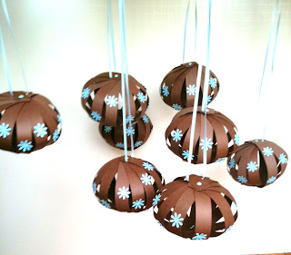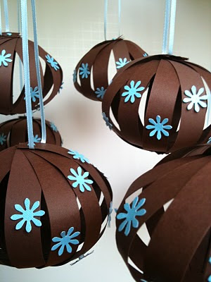 Эти шары делаются из одинаковых кружочков, у которых после прикладывания шаблона равнобедренного треугольника,загибаются к внешней стороне полумесяцы, которые потом и склеиваются между собой.