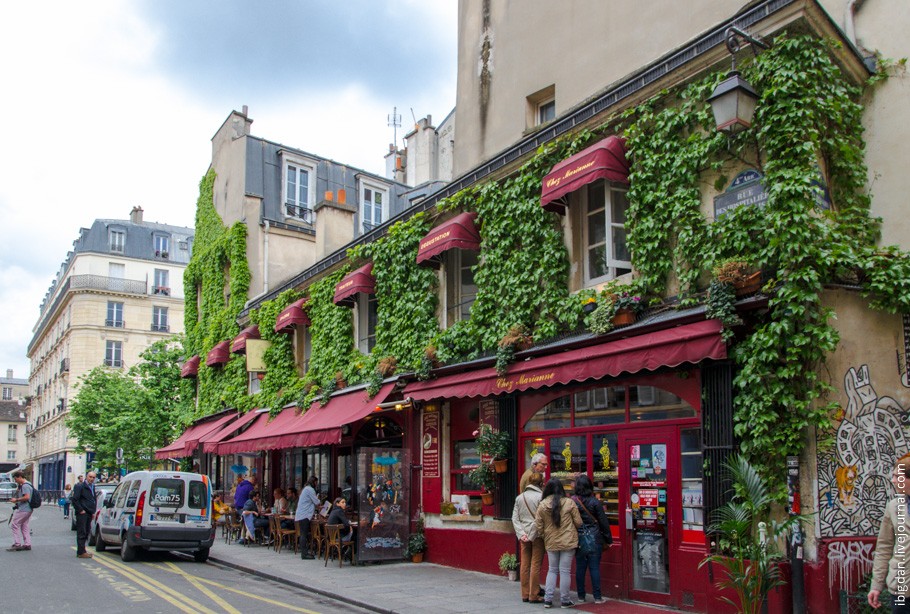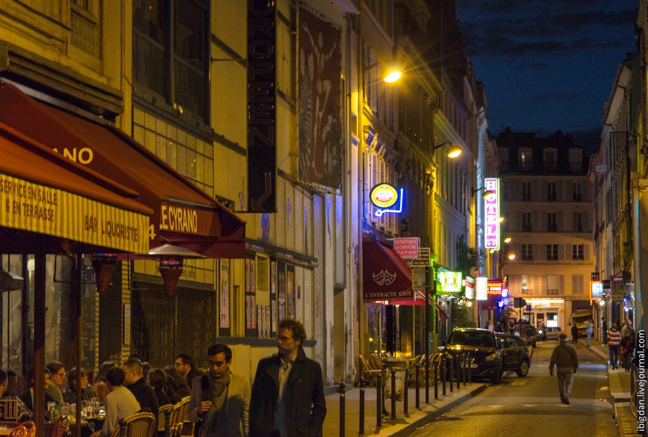 На Монмартре, да и вообще в Париже очень много кафешек-ресторанчиков — на главных улицах они идут просто подряд, между ними с трудом втискиваются магазины и отели. И всё это работает до 12 ночи, а кафе плотно забиты с семи вечера — в это время у французов начинается «обед», длящийся до ночи. Любимый ресторанчик — это не только еда, но и место для встреч с друзьями.