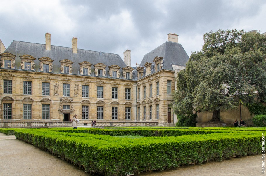Много старых (очень старых) зданий в хорошем состоянии — государство за ними ухаживает. На фото выше — королевская площадь, она же площадь Вож. На ней установлен памятник Людовика XIII, того самого, который был женат на Анне Австрийской.