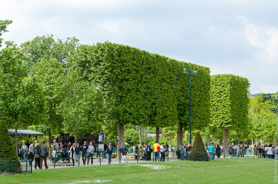 А вот Марсово поле под Эйфелевой башней — действительно поле. Вот только деревья на нём из Майнкрафта: