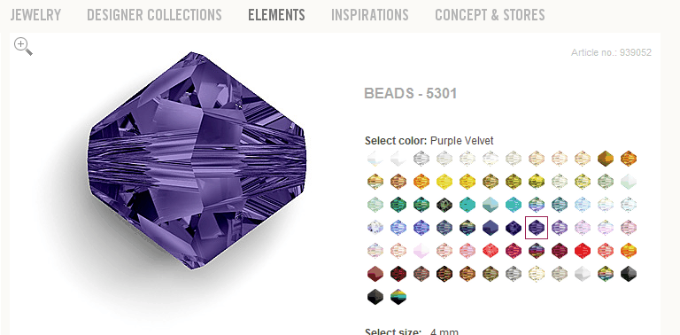 En la web de abalorios Swarovski podéis ver toda la gama de colores de sus elementos que os será muy útil para elegir los colores de vuestras creaciones y conocer todos los productos.