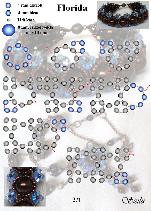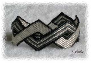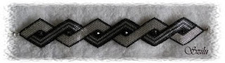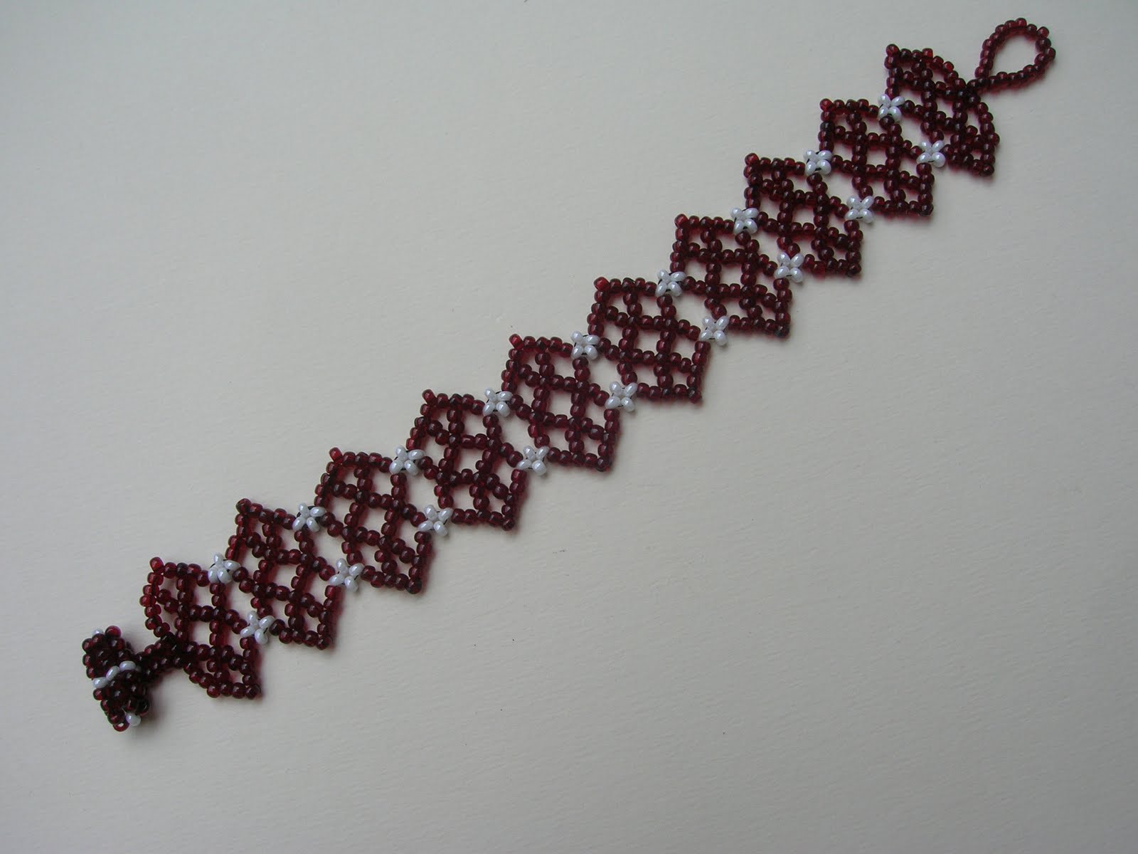 Браслет состоит из 10 чередующихся по цвету ромбиков (черный, красный и т.д.) и промежуточных блоков серого цвета