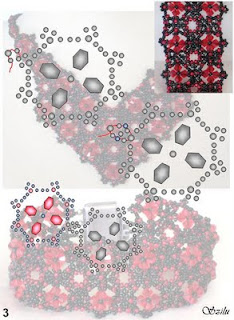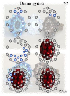 Aquí tenéis el esquema para hacer el anillo con corazones de cristal. No es una pieza muy difícil de hacer, como vereis el patrón y los pasos son bastante sencillos, pero hay que prestar atención para que los corazones de Swarovski queden bien colocados, deben quedar hacia arriba y formando un círculo con los vértices hacia afuera.
