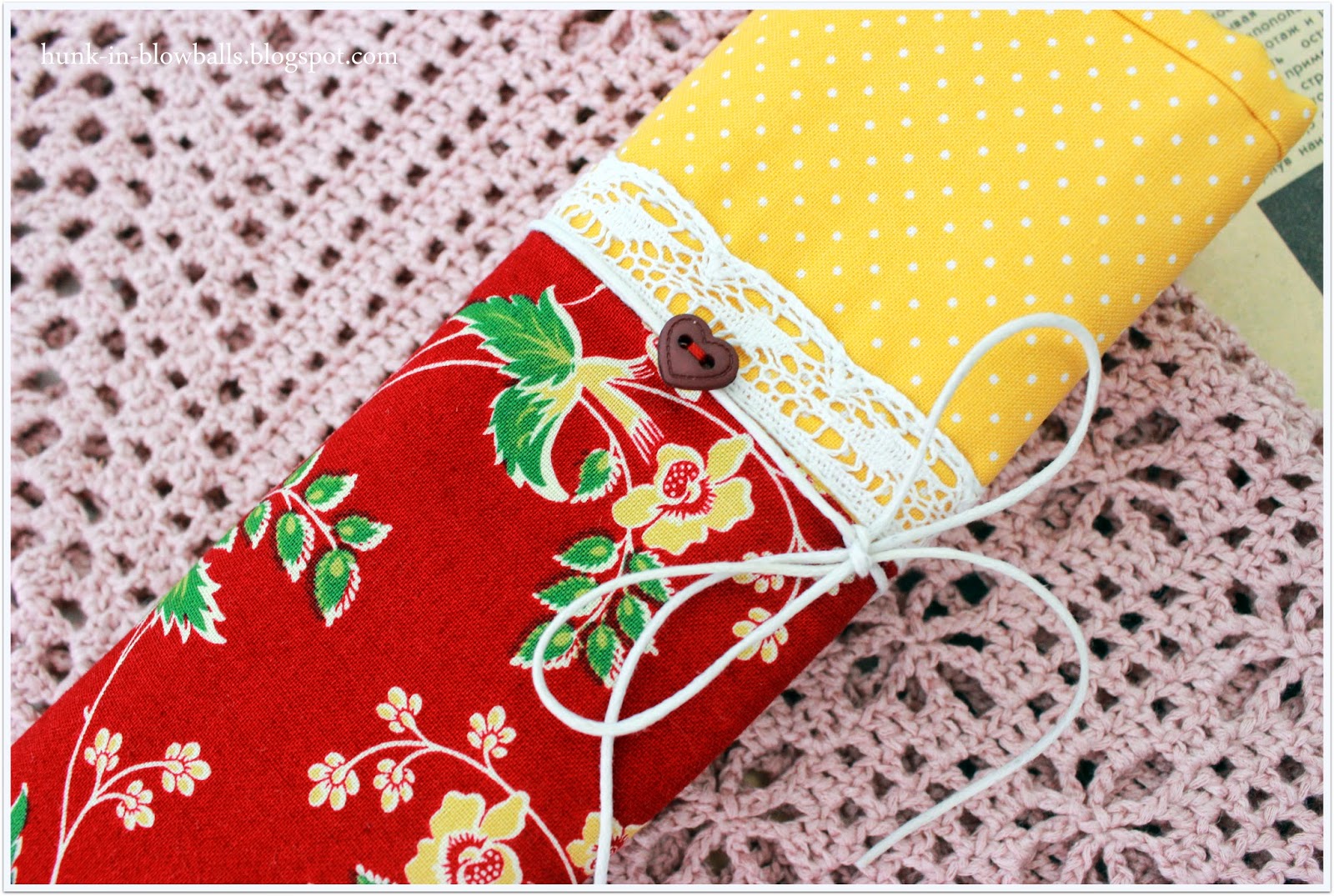 Чехол сшит из хлопка в цветочек и полосатой ткани из бабушкиных запасов, внутри подкладка из ткани в клетку. Уплотнен дублерином. Из украшений - натуральное кружево и деревянный декор.