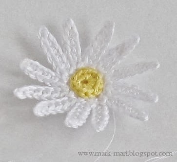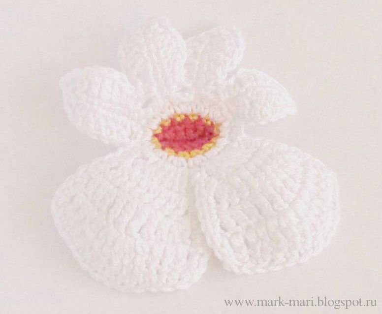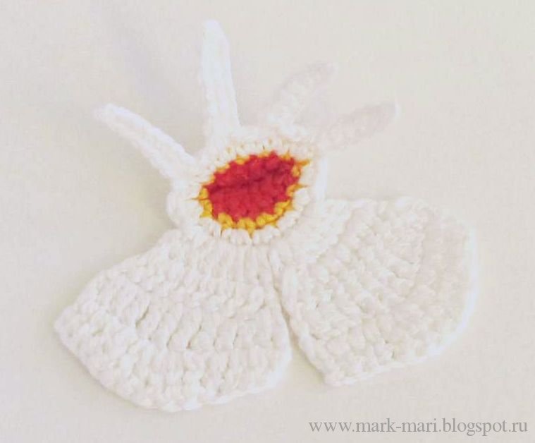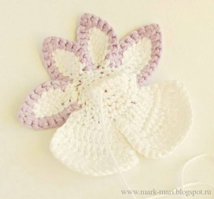 Оборвем нить и начнем вывязывать белые лепестки.