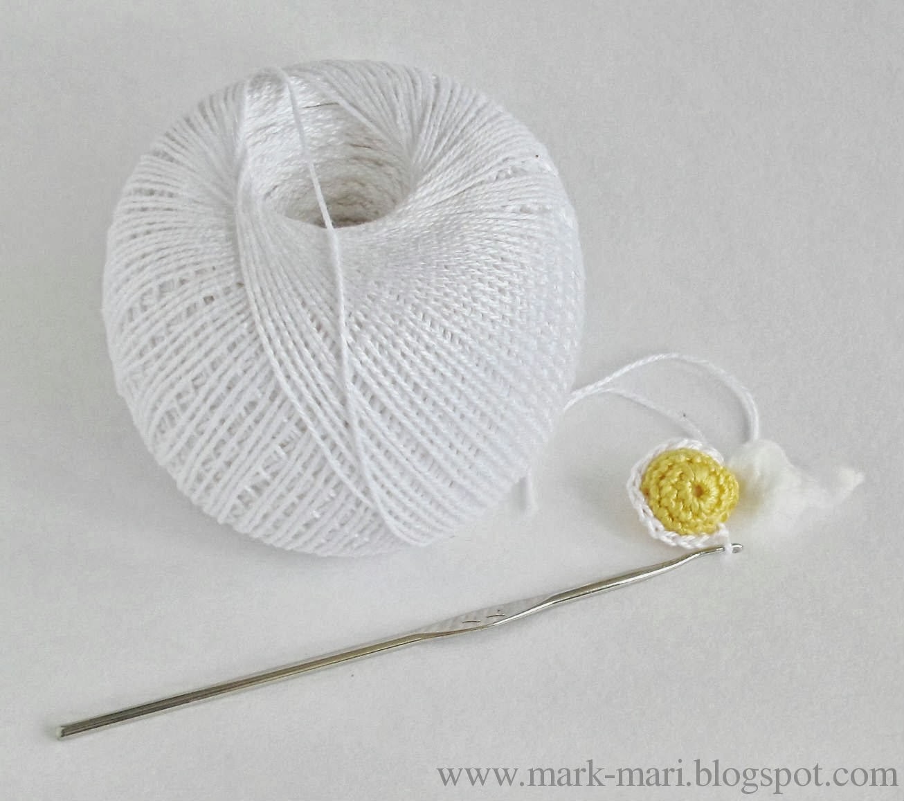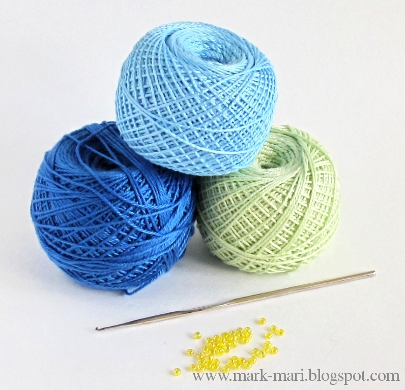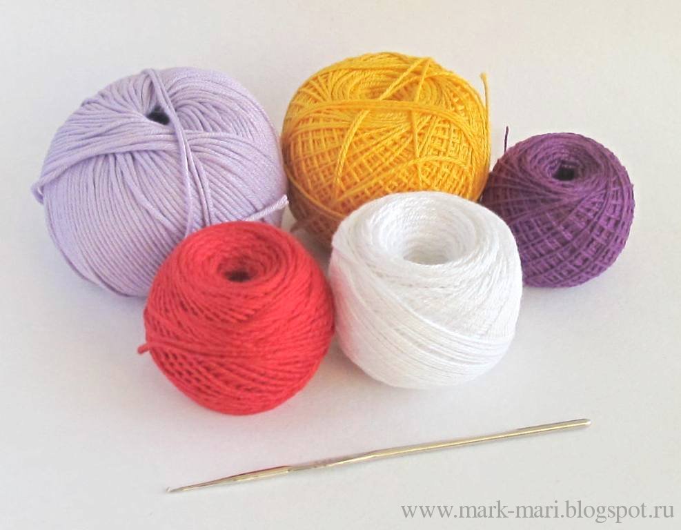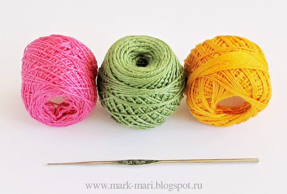 Для вязания я использовала хлопок "Ирис" и "Нарцисс" и крючок №1.