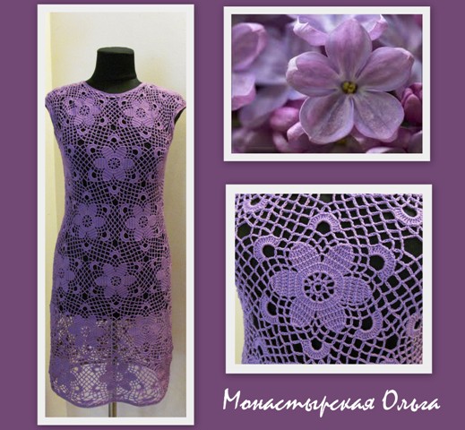 Платье крючком "Сирень" от Ольги Монастырской |