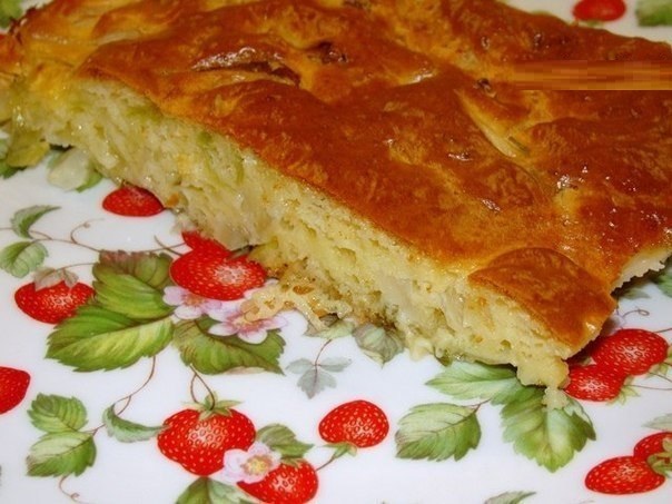 Ставим на некоторое время в теплое место, чтобы тесто еще немного поднялось, затем смазываем желтком и отправляем в духовку. Выпекаем при температуре 170 градусов минут 15-20, пока пирог не станет красивого золотистого цвета. Вот и все, пирог «Бабушкина салфетка» готов! Приятного аппетита!