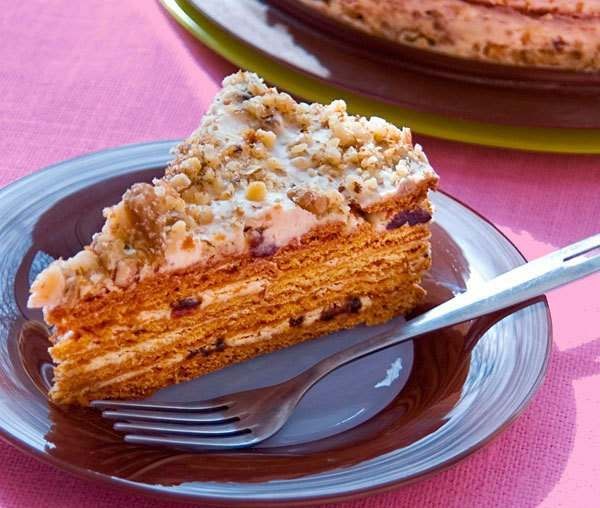 Если у вас под рукой есть апельсиновый джем или лимонное варенье, разрежьте этот пирог вдоль на несколько коржей и промажьте их – получится еще вкуснее, а времени на оформление такой начинкой уйдет больше всего на пять минут.