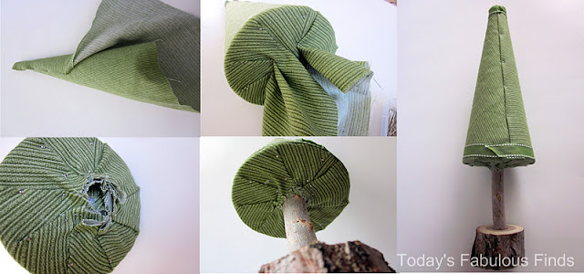 Необходимо обернуть ткань вокруг конуса и вырезать из нее шаблон, как указано на фото.