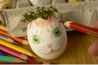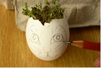 3. Между тем яичка-горшочки раскрасим - нарисуем мордочки различных зверят: зайчика, овечки, кошечки и т.д. Рисунок нанесем мягким карандашом.
