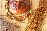 8. Два пучка березовых или ивовых прутиков перекрутить, места соприкосновения перевязать. Получился весенний венок, в центр которого поставим пасхальный кулич а вокруг наших веселых зверят. Свежей зеленью кресс-салата можно посыпать бутерброд с маслом. Очень вкусно!