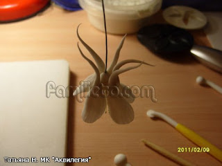 Сформировать лепесток-кувшинчик. Можно формировать шариком, но нужно сделать углубление в хвостик кувшинчика, затем прокатать палочкой для прожилок. Можно делать конусовидной моделирующей палочкой, потом можно прокатать прожилки, можно так оставить))) Вот конусом очень удобно!!!!