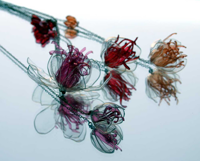 Наткнулась в интернете на интересный блог: там столько много красоты из пластиковых бутылок. Основная масса - бижутерия: браслеты, серьги, колье, кольца. Но есть и разнообразные вазочки. Любуемся красотой и мастерством автора!!