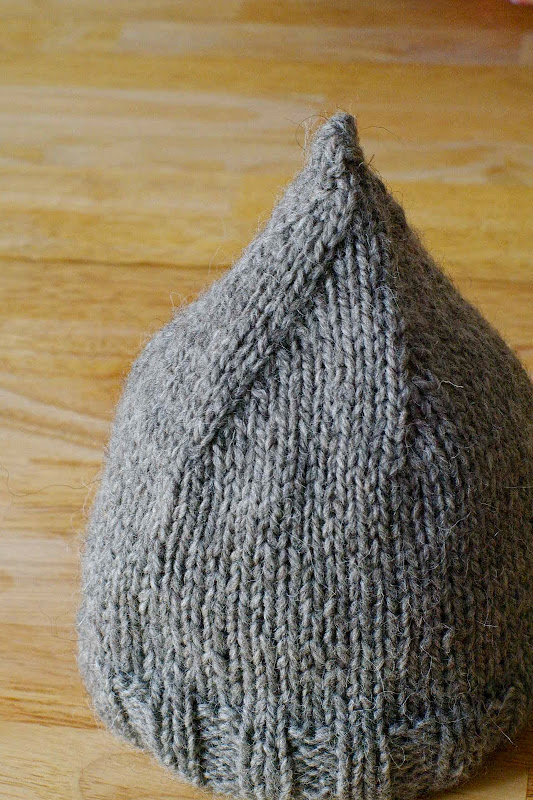 Мысик шапочки (точка К) вывязывают, убавляя или прибавляя петли через лицевой ряд.