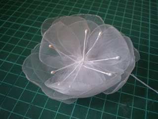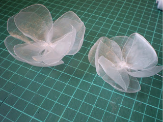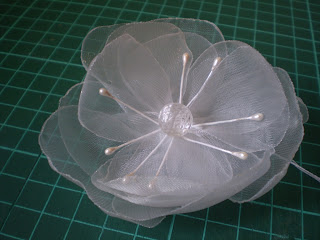 В зависимости от длины ленты, количества пришиваемых одновременно складок, расстояния от предыдущего уровня у Вас получатся цветы разного диаметра и пышности.