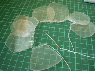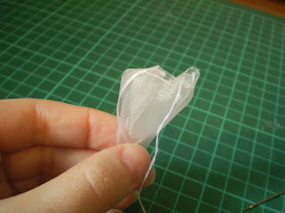 6. Присбариваем ленту и этими складочками обкручиваем сердцевину, закрепляем.