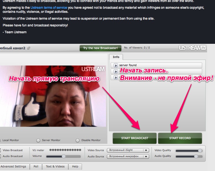 Видео на Ustream можно транслировать в прямом эфире. А можно просто записать и посмотреть позже. Ролик можно выложить на любой ресурс, тот же Youtube, к примеру.