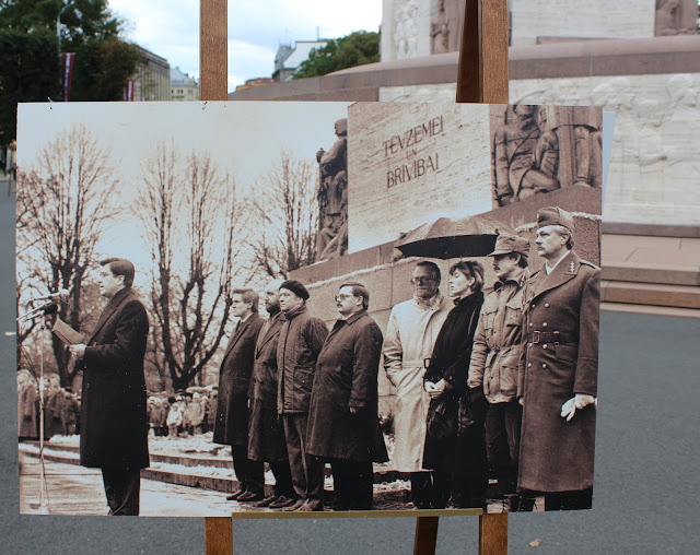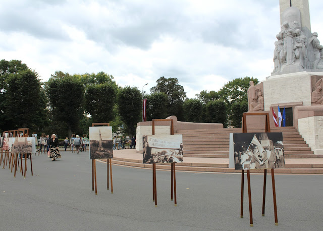 Фотовыставка у памятника Свободы в Риге |