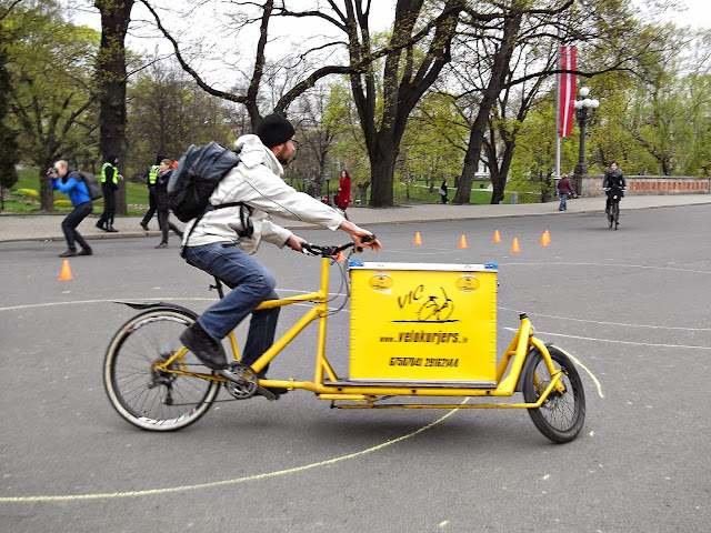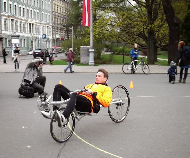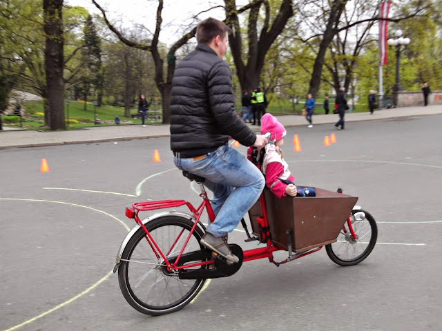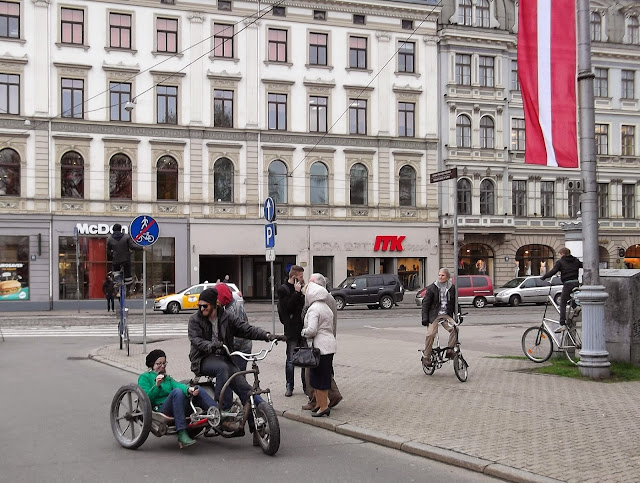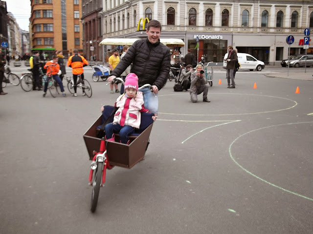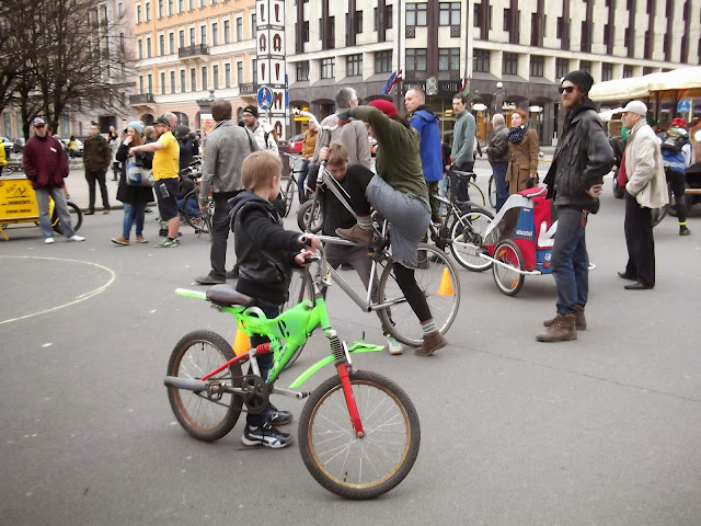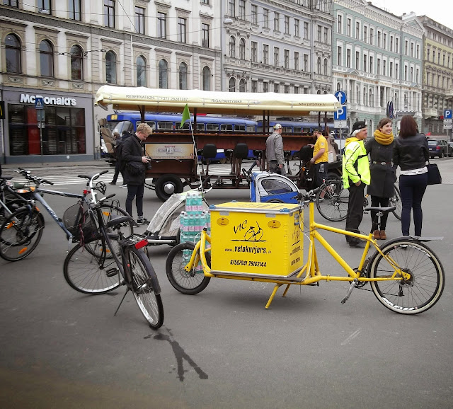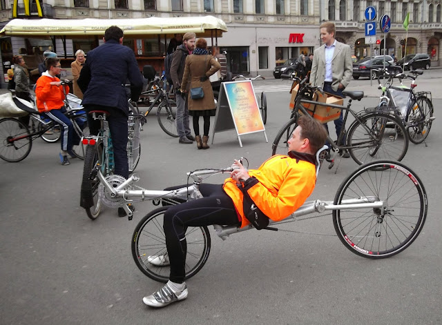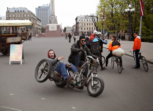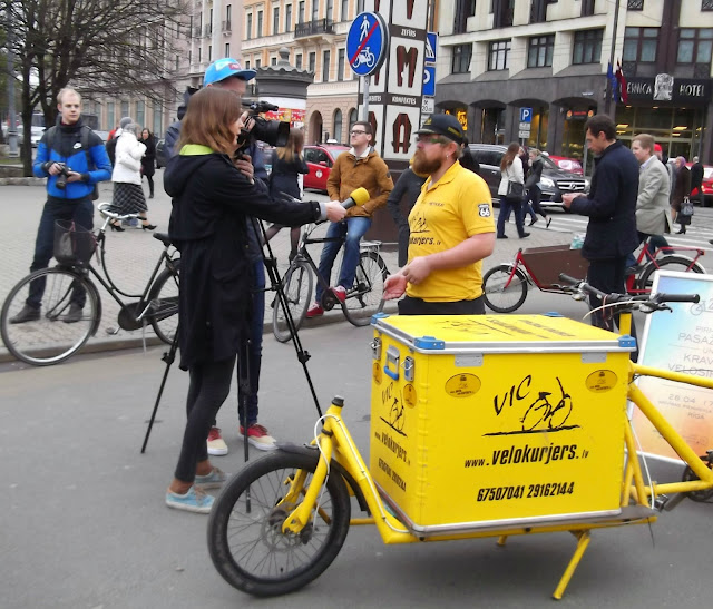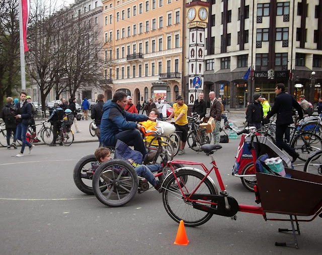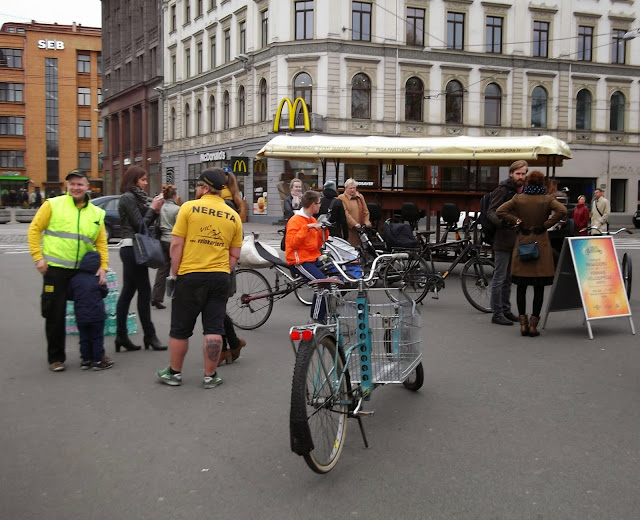 Первый сбор грузовых и пассажирских велосипедов на площади Свободы в Риге 28 апреля 2015 года.