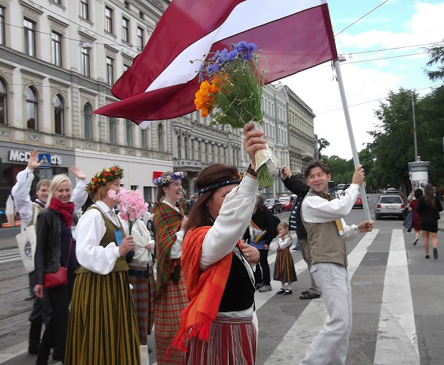 VIII праздник песни Балтийских и Северных стран в Риге. Торжественное шествие к памятнику Свободы 26 июня 2015 года.