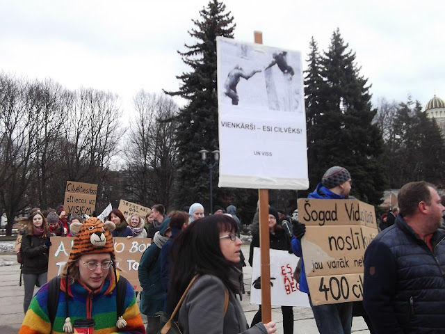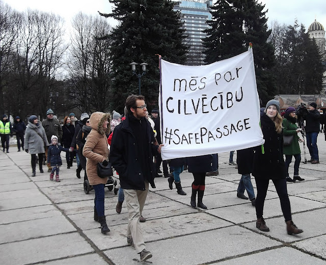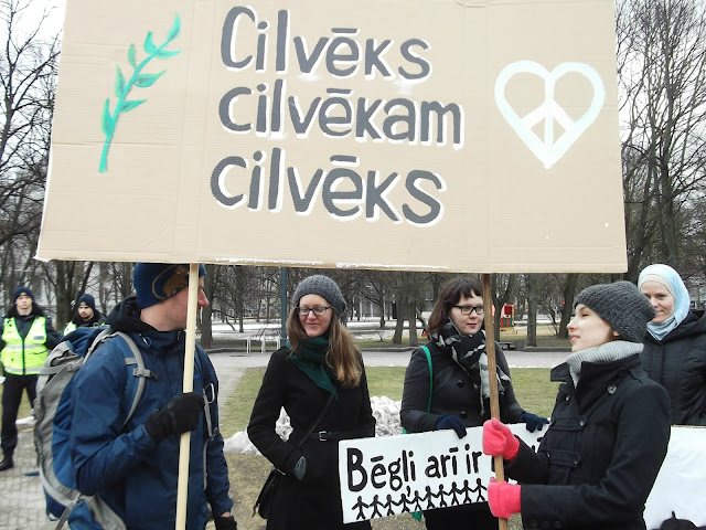 Акция в Риге в защиту беженцев 27 февраля 2016 года.