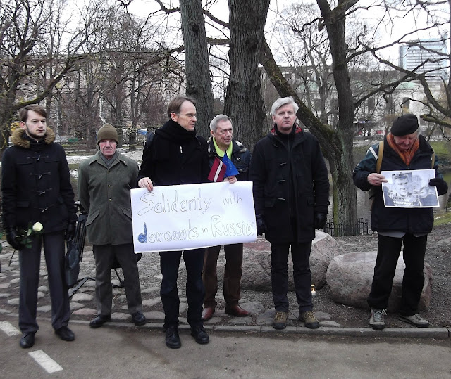 Акция памяти Бориса Немцова в Риге, в парке у Бастионной горки, 27 февраля 2016 года.