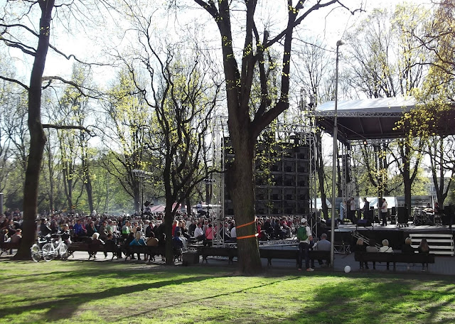 Латвийский профсоюз LABA отмечает 1 мая 2016 года в Верманском саду города Риги.