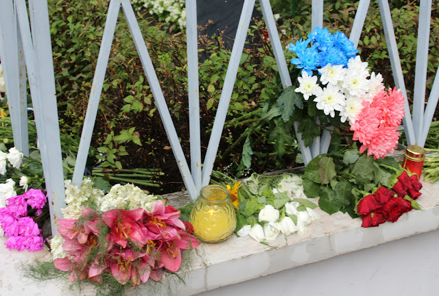 Цветы у посольства Франции в Риге. Памяти жертв теракта в Ницце. Фото 16 июля 2016 года.