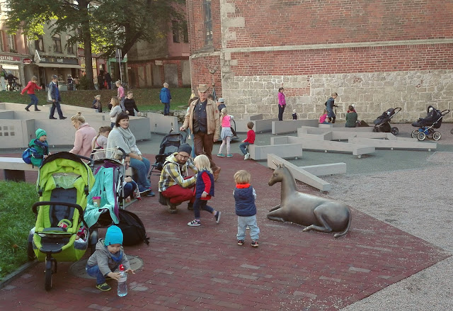 День Микелиса - день урожая, праздничный базар в Риге (Латвия), на Домской площади города, 23 сентября 2017 года.