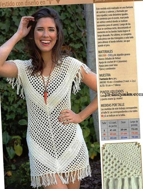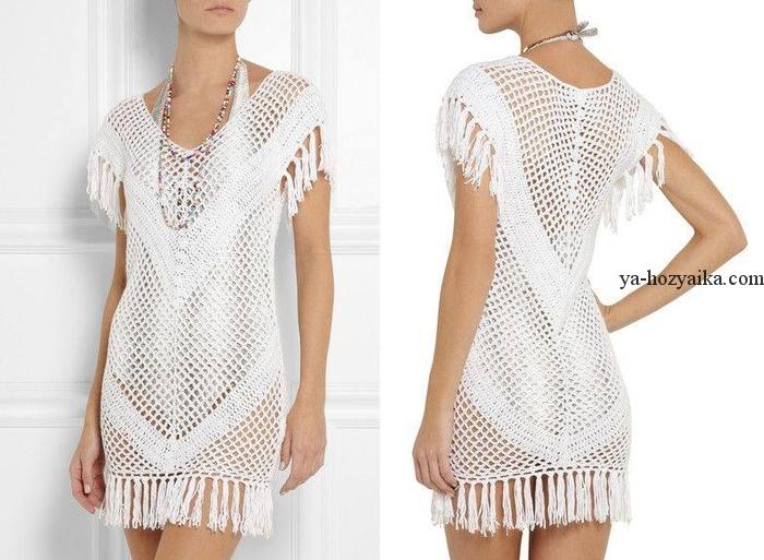 Туника в филейной технике крючком. Туника в стиле бохо крючком