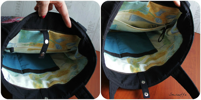 Теперь о сумочке. О оставшейся части бутылки отрезаем полоску шириной около пяти см, обклеиваем подложкой и обшиваем тканью. На диски для стенок приклеиваем картон с двух сторон, чтоб стенки были крепче, далее опять подложка и ткань. Опять же, не забываем про ручки. Собираем все детали, декоративно оформляем кружевом и пуговицами. Все детали сшивались вручную косыми стежками.